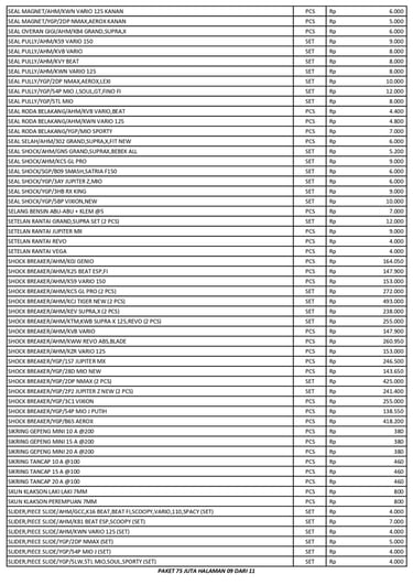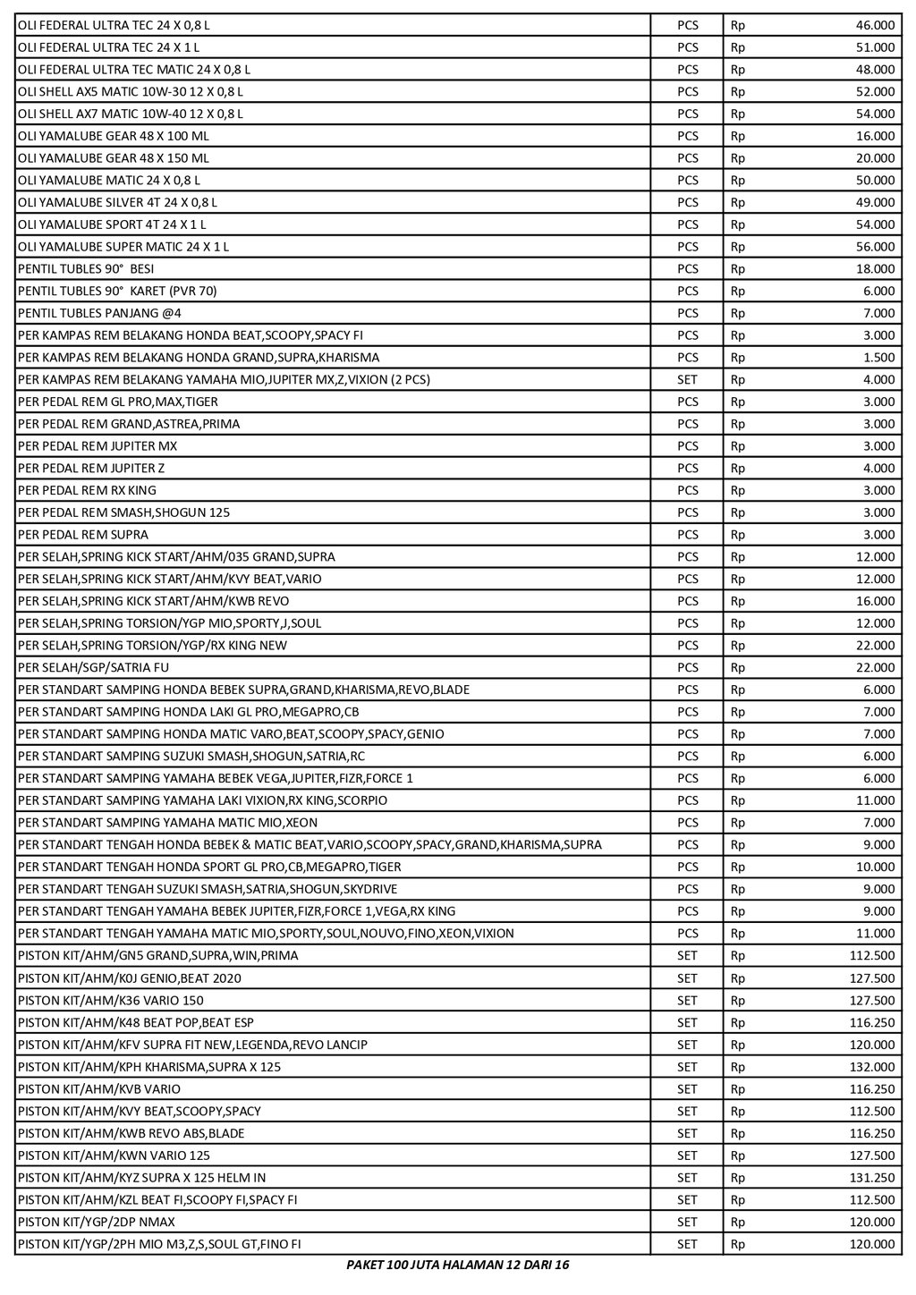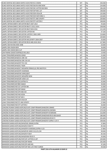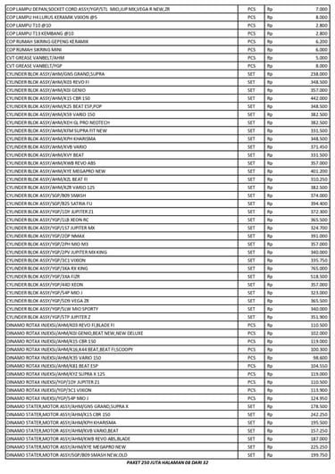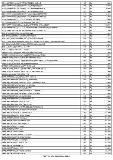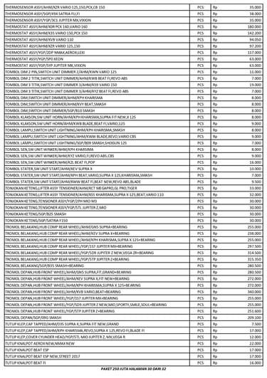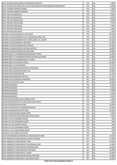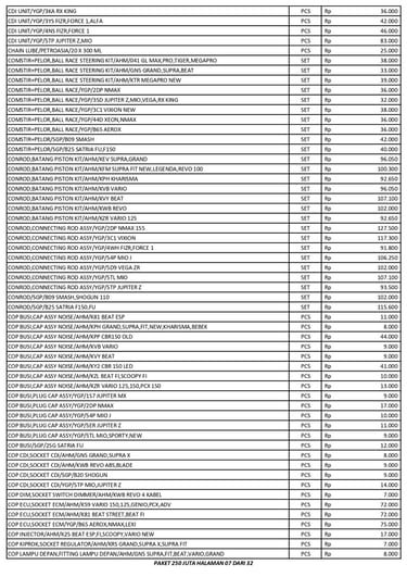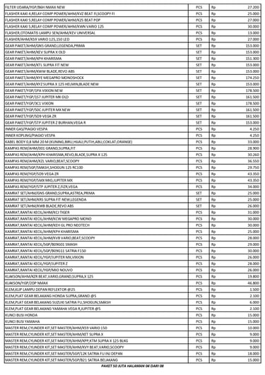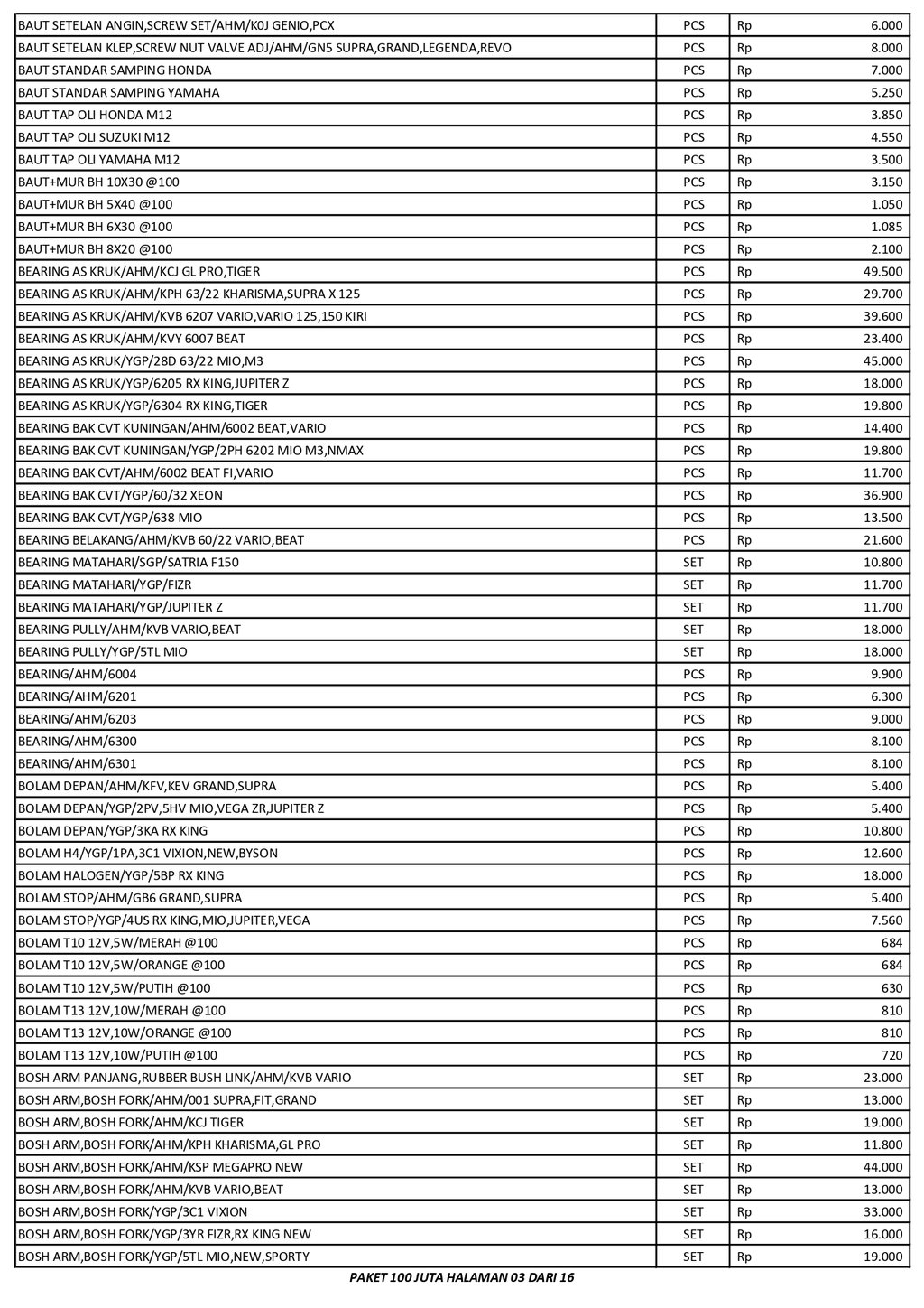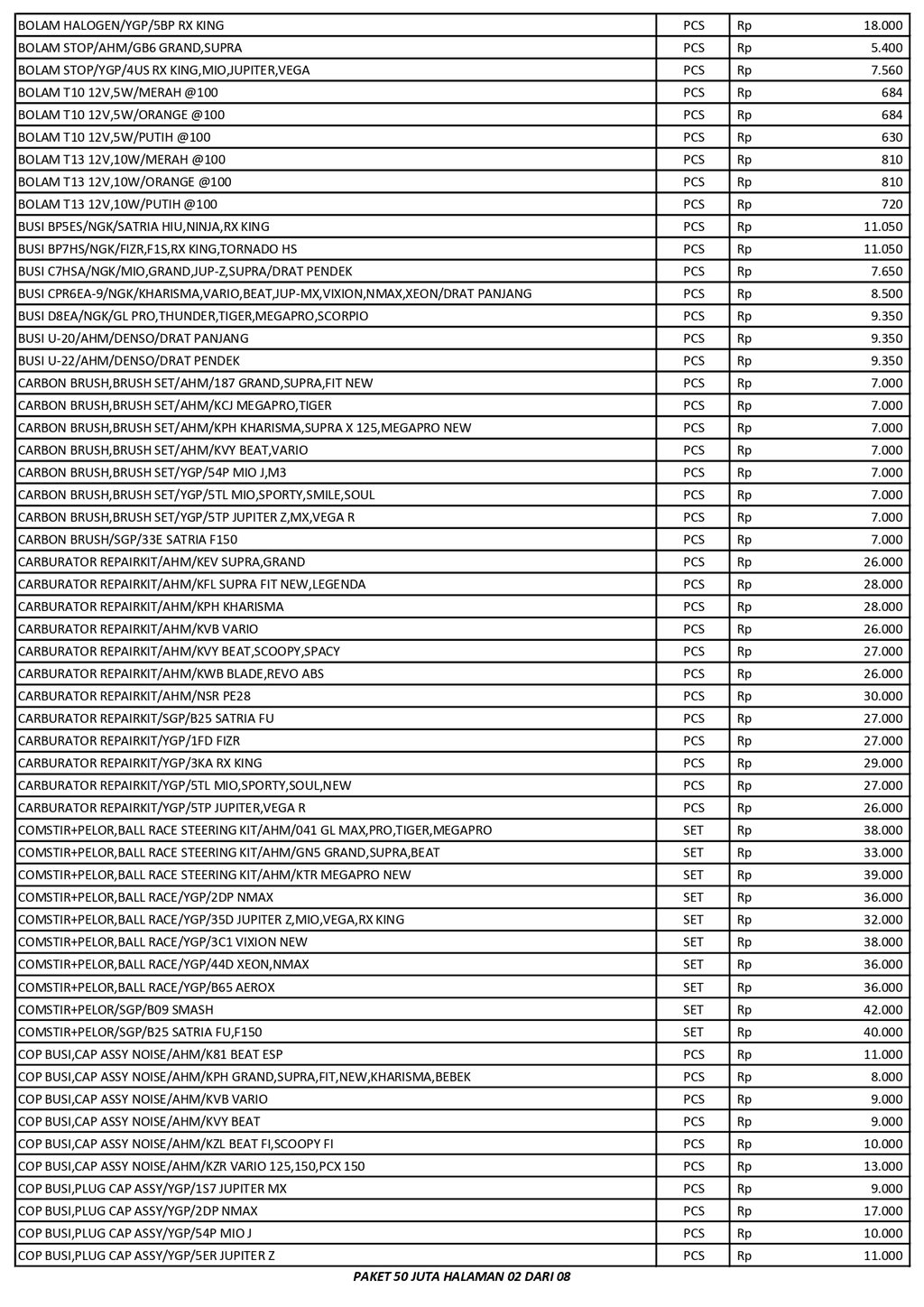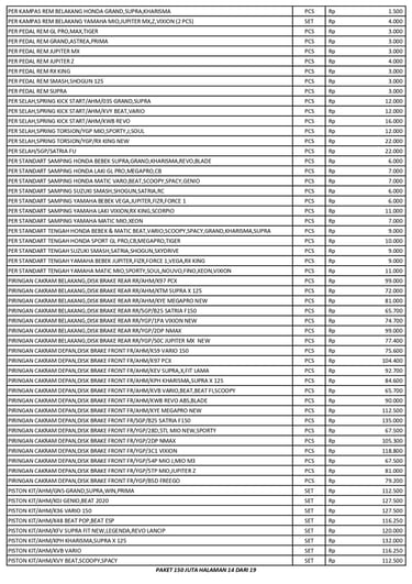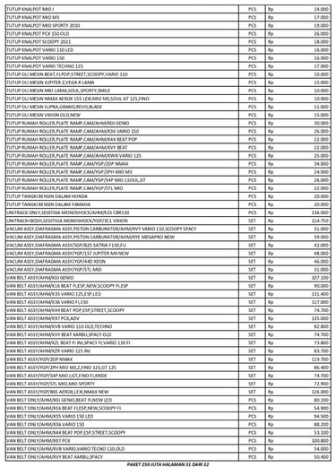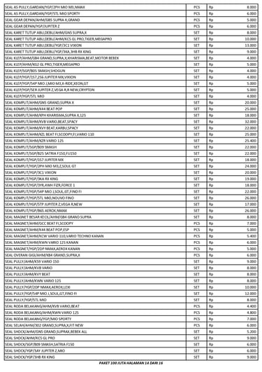 PRICELIST SPAREPART, BAN LUAR, BAN DALAM, DAN OLI