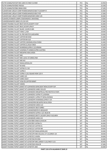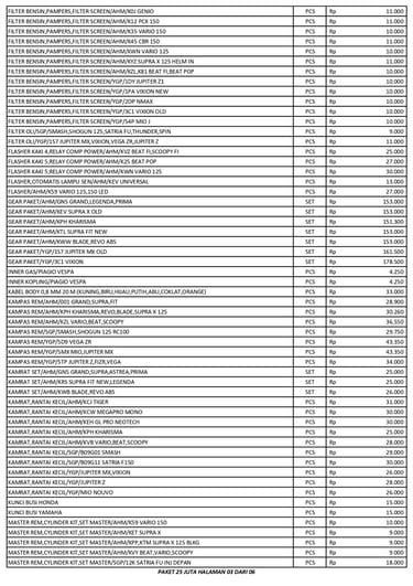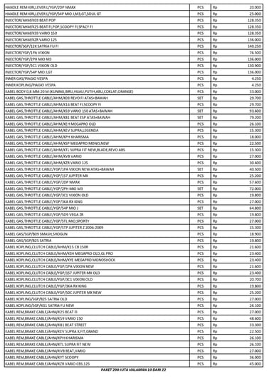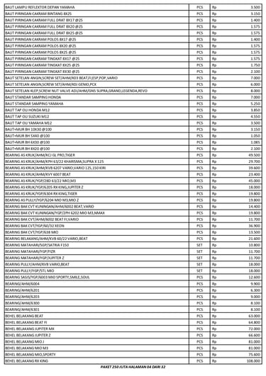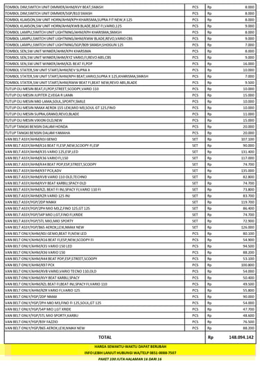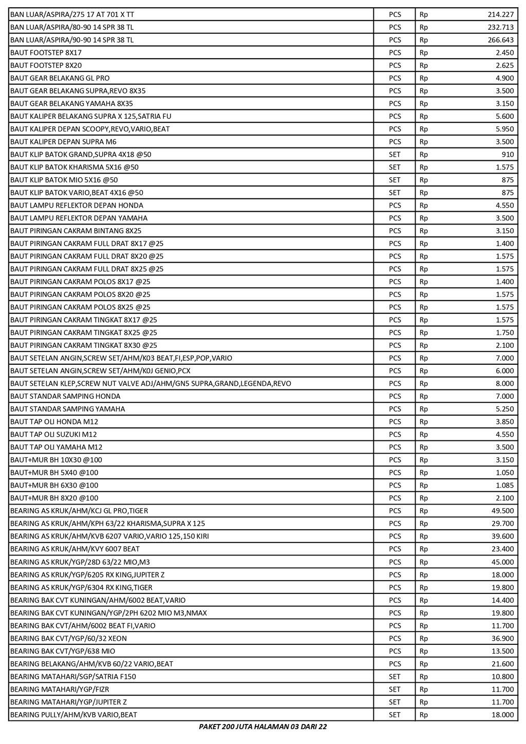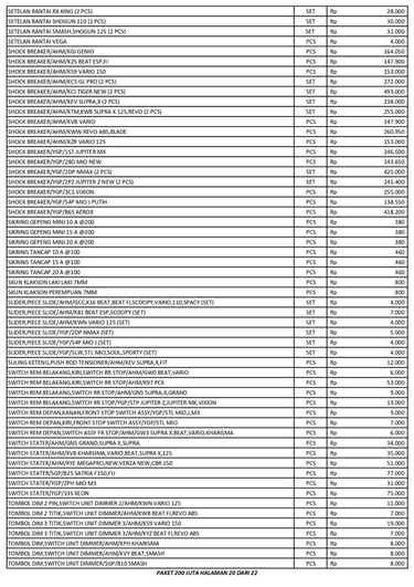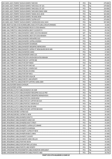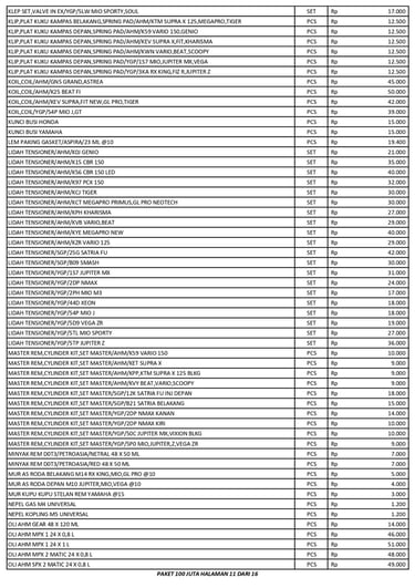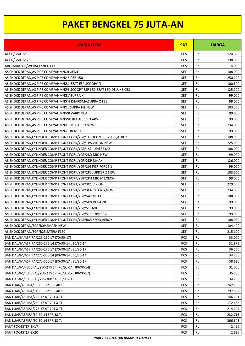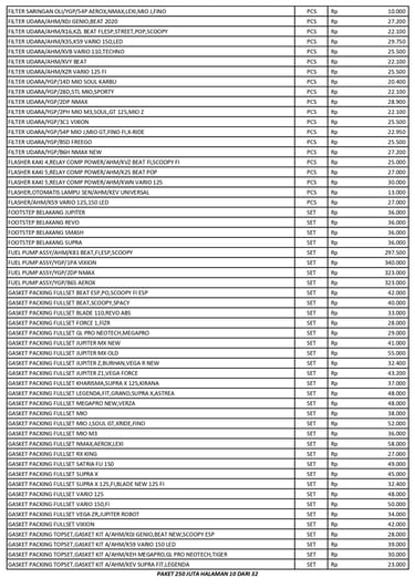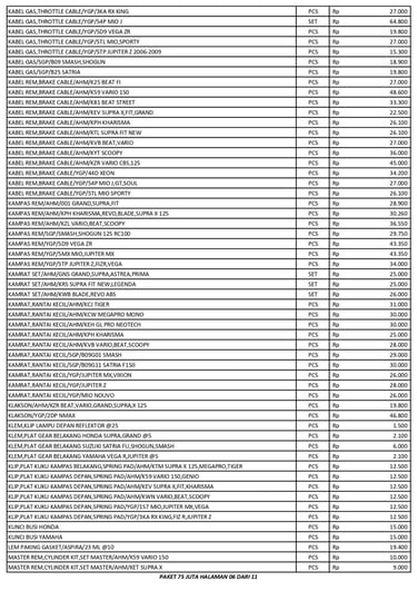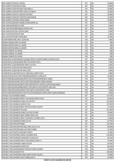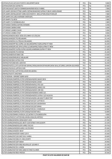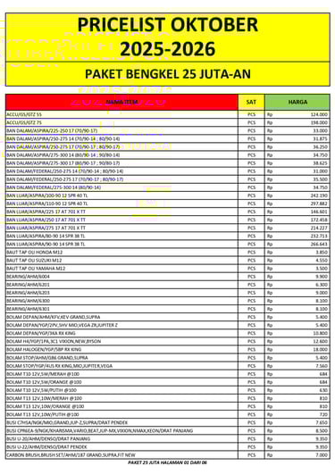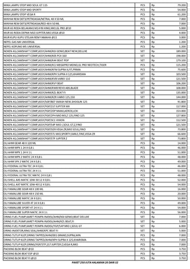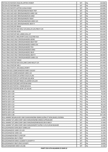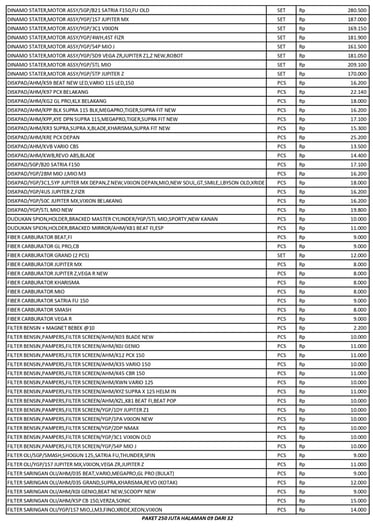 PRICELIST SPAREPART, BAN LUAR, BAN DALAM, DAN OLI
