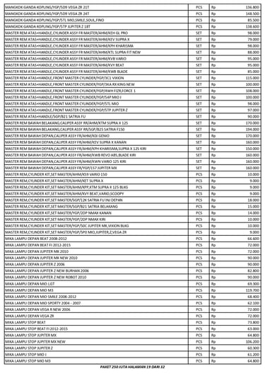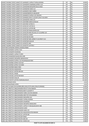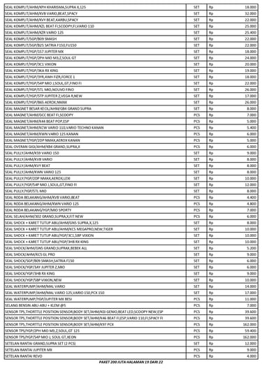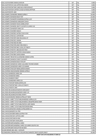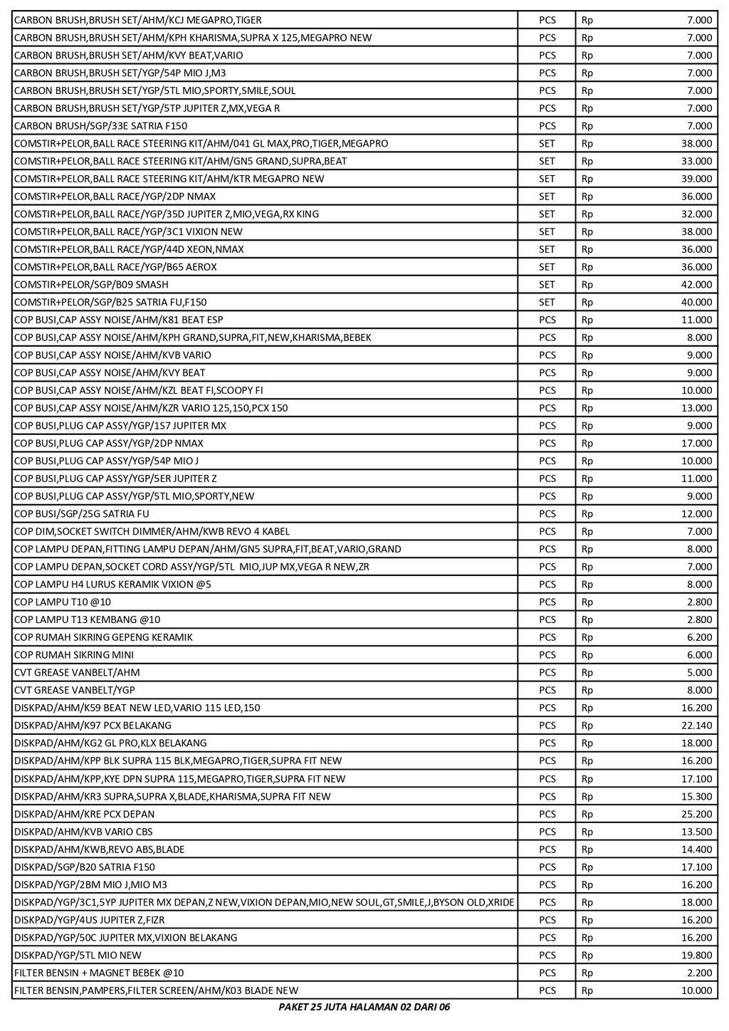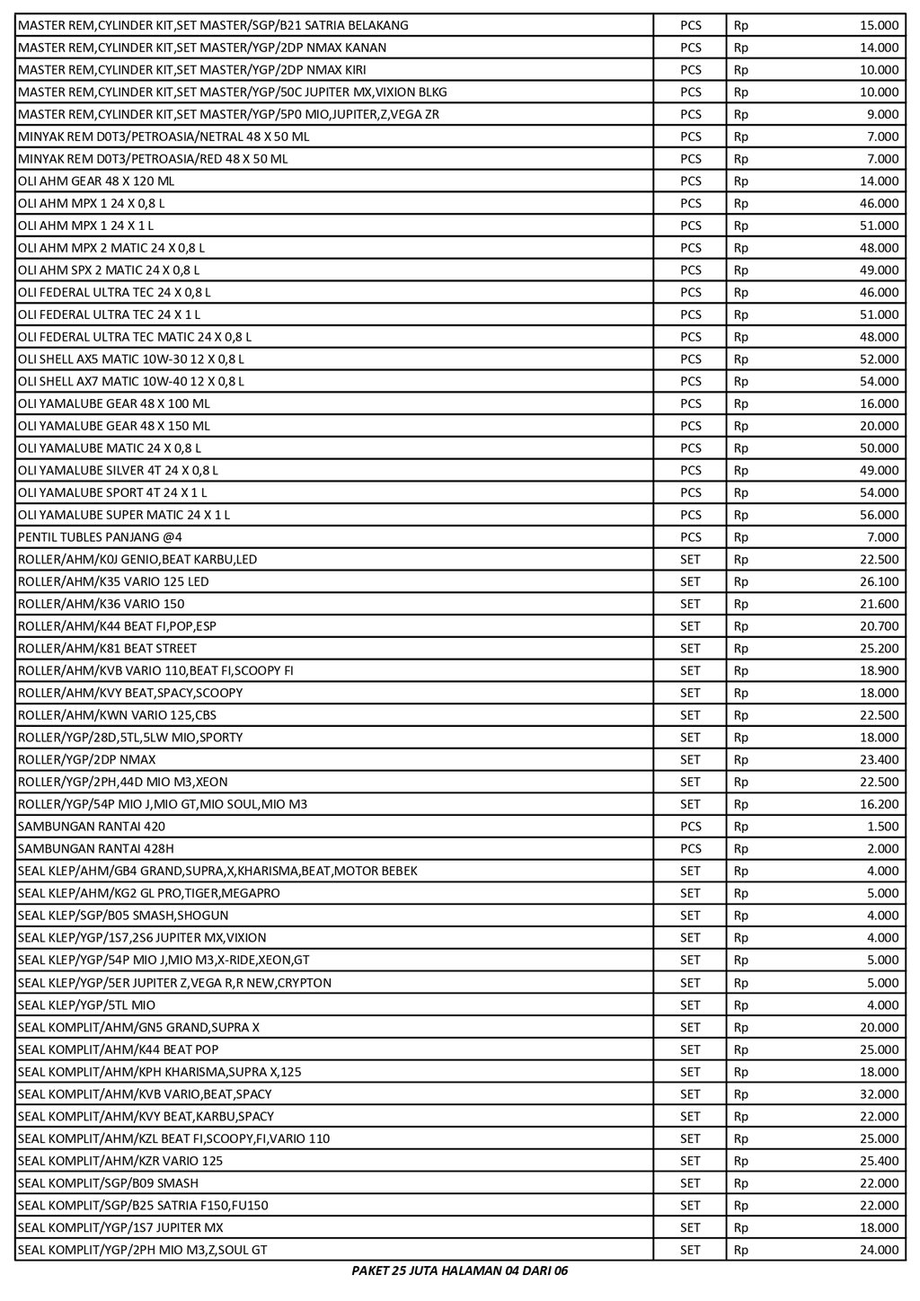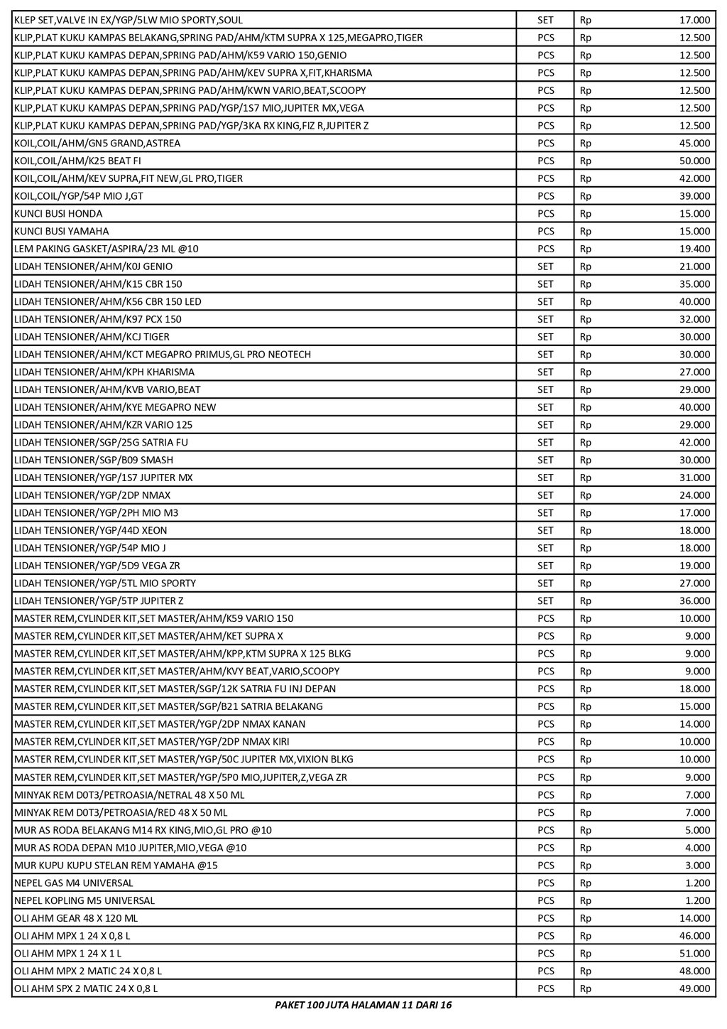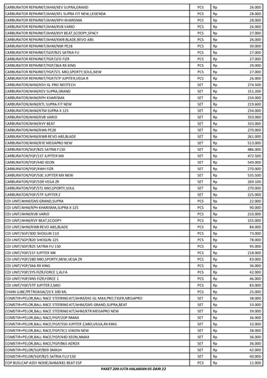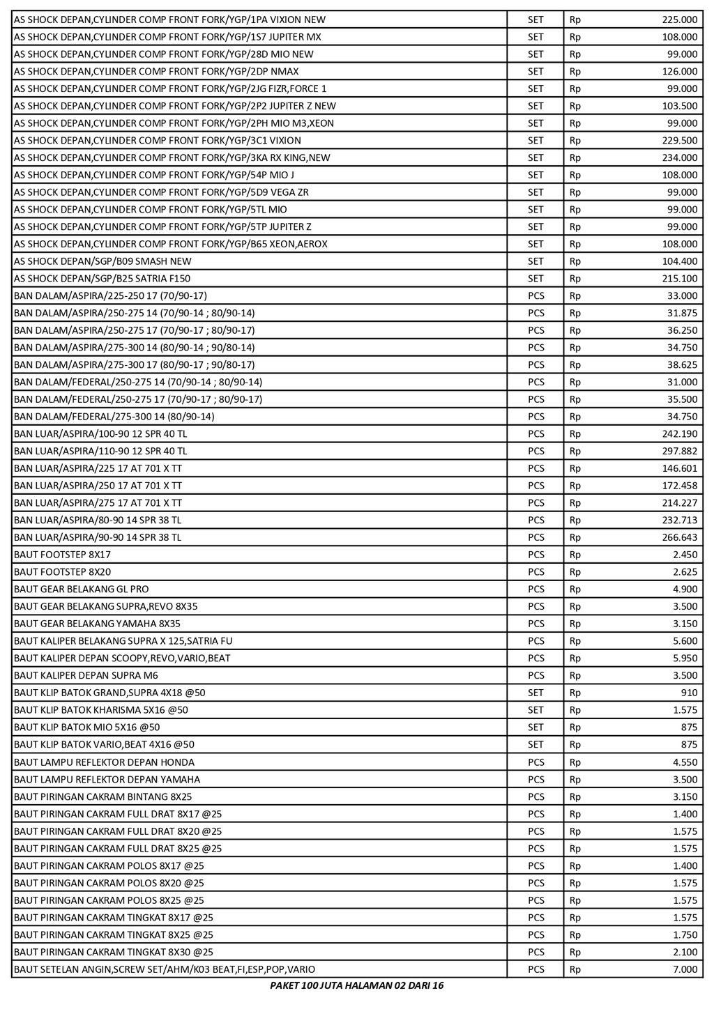 PRICELIST SPAREPART, BAN LUAR, BAN DALAM, DAN OLI