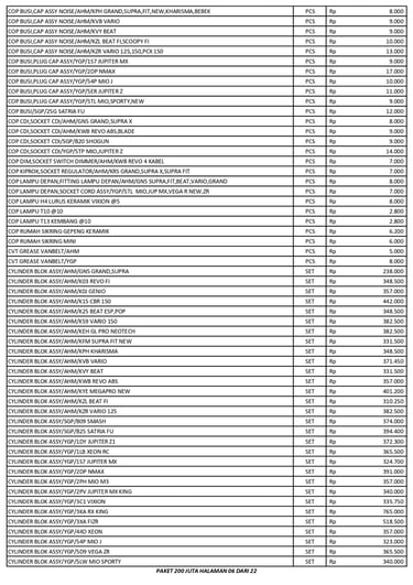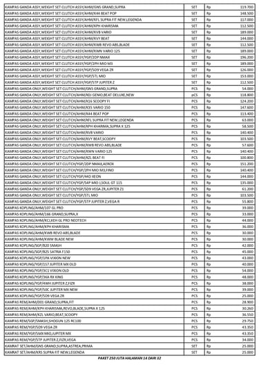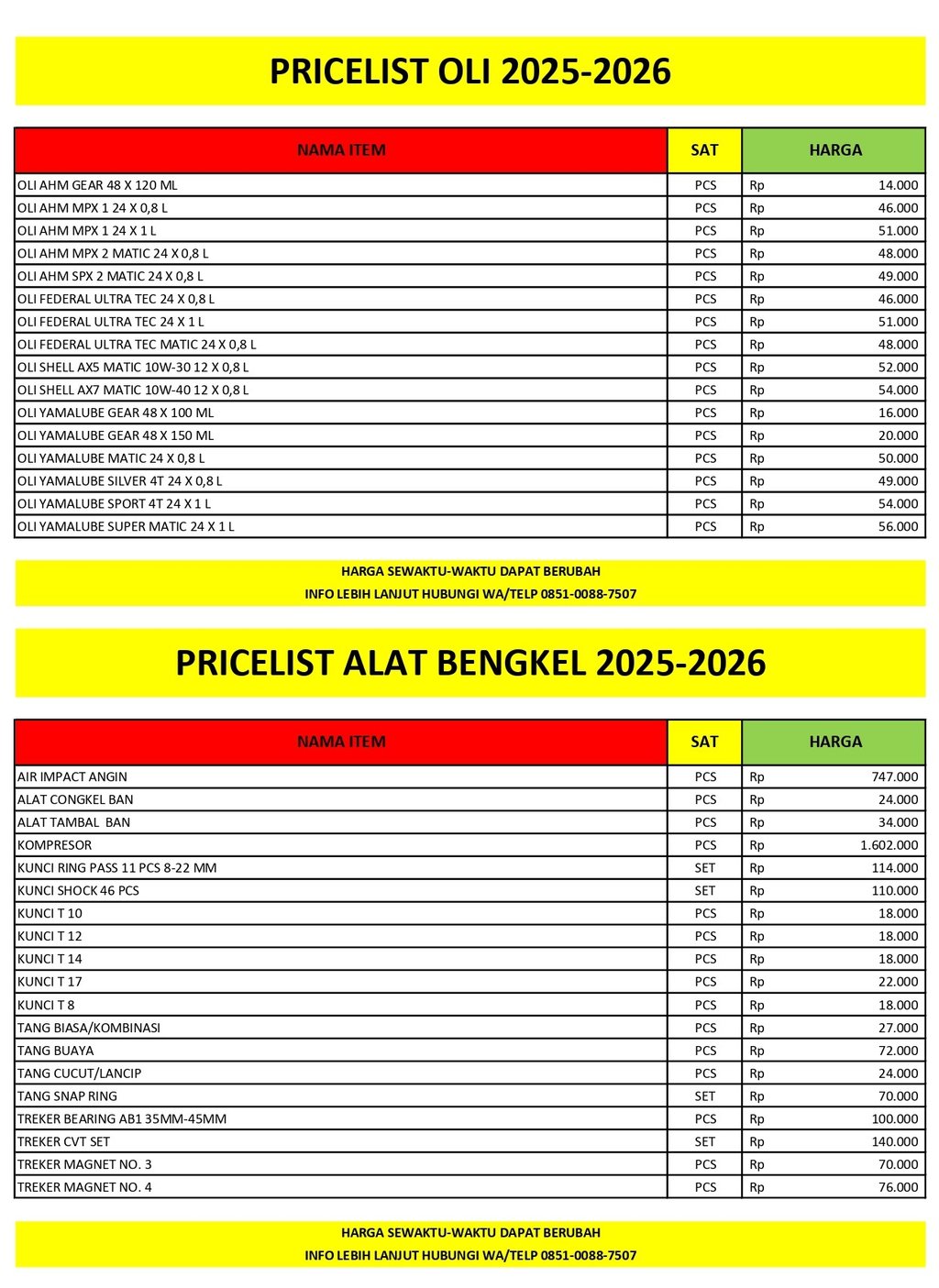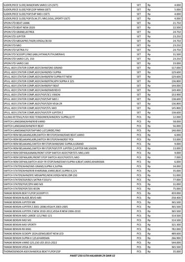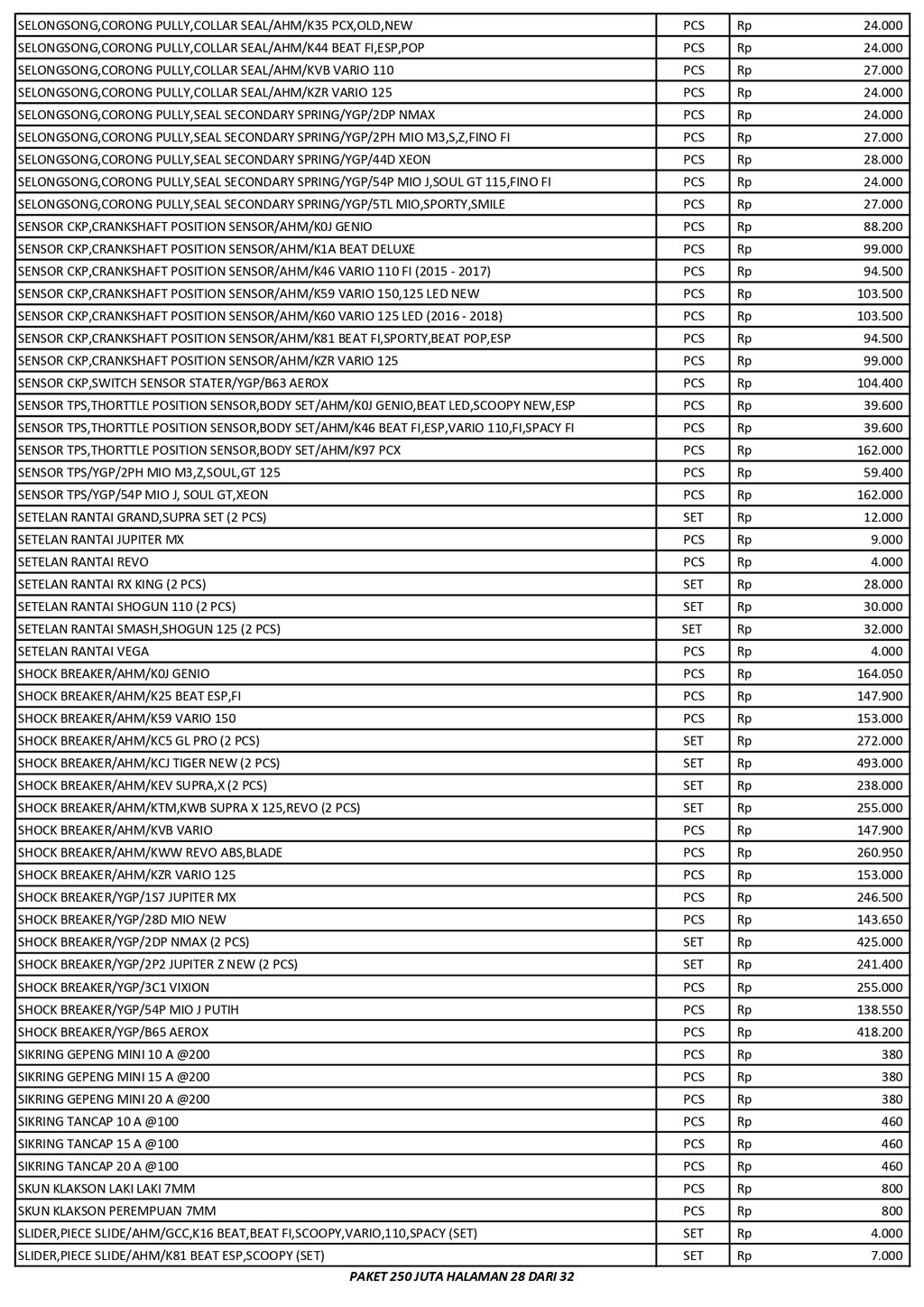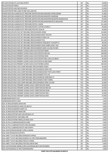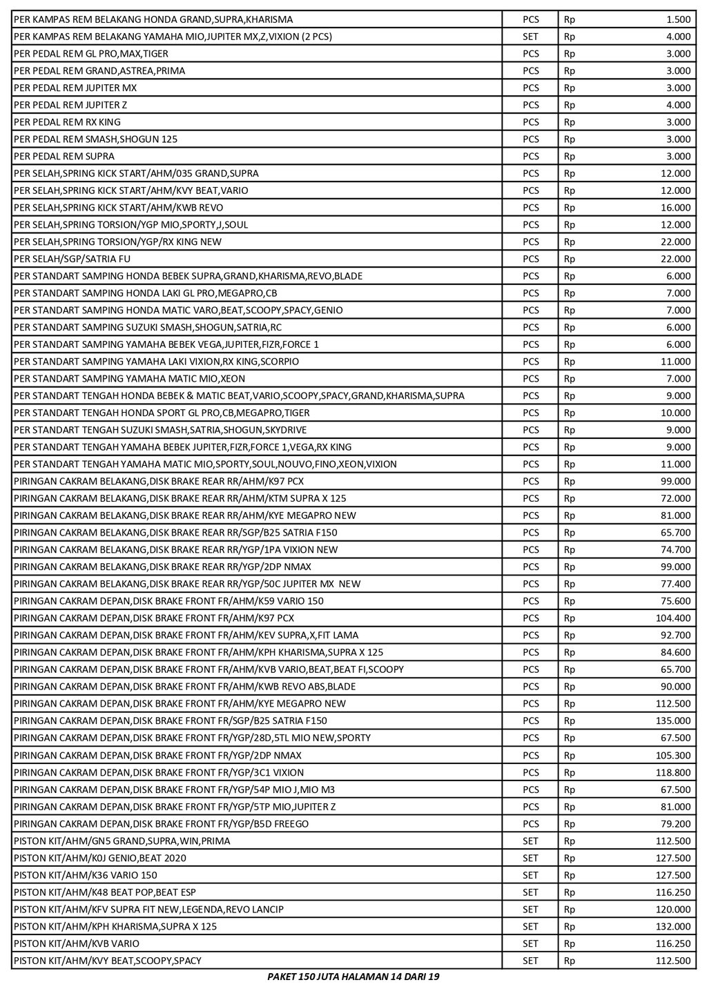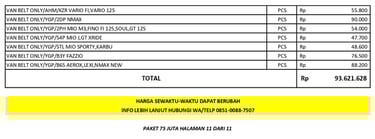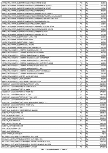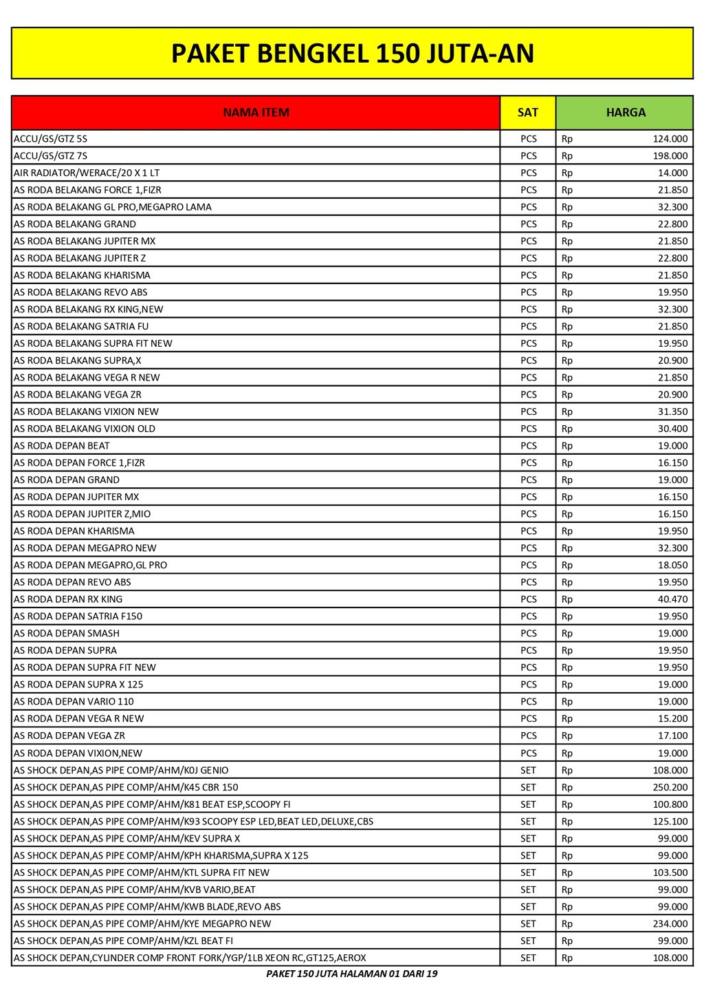 PRICELIST SPAREPART, BAN LUAR, BAN DALAM, DAN OLI