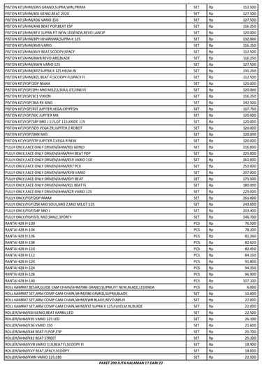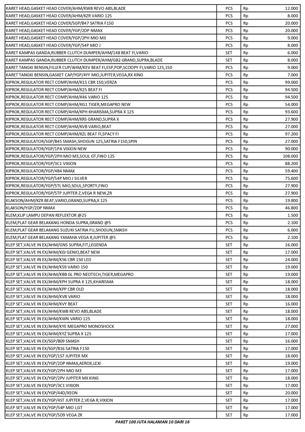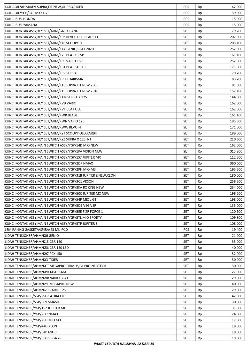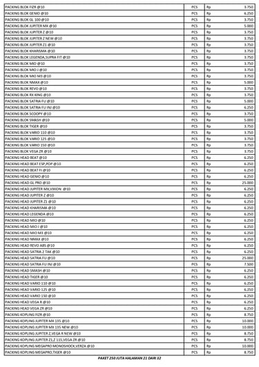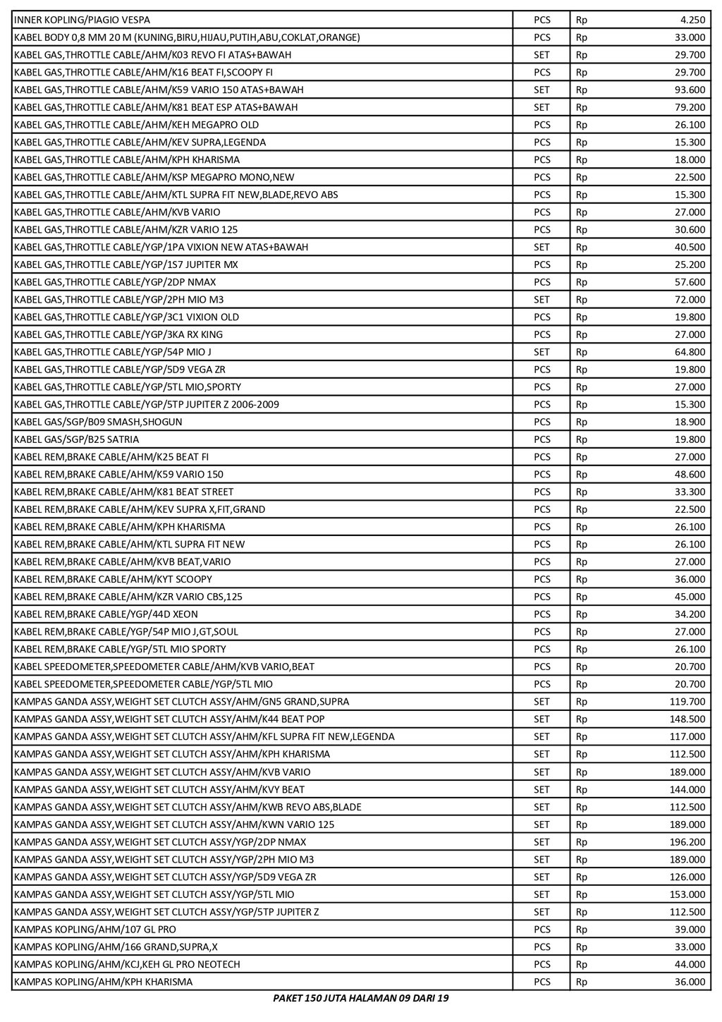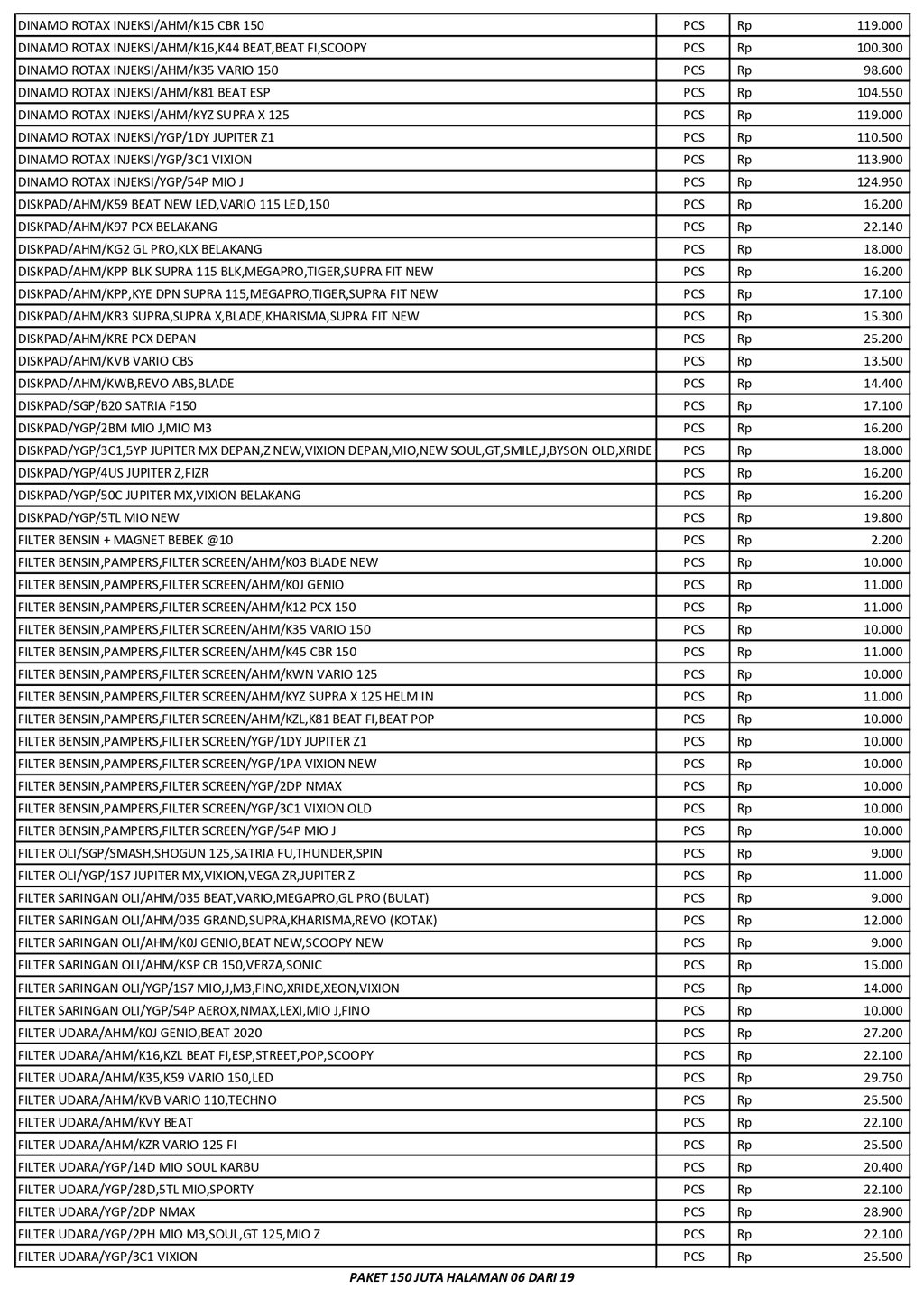 PRICELIST SPAREPART, BAN LUAR, BAN DALAM, DAN OLI