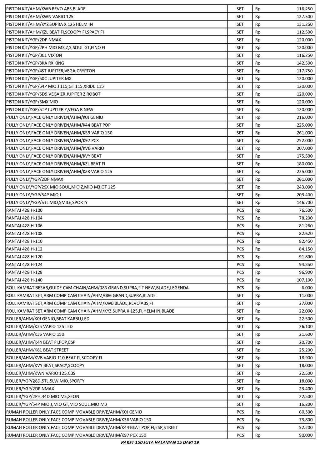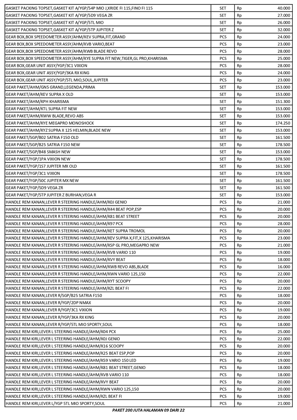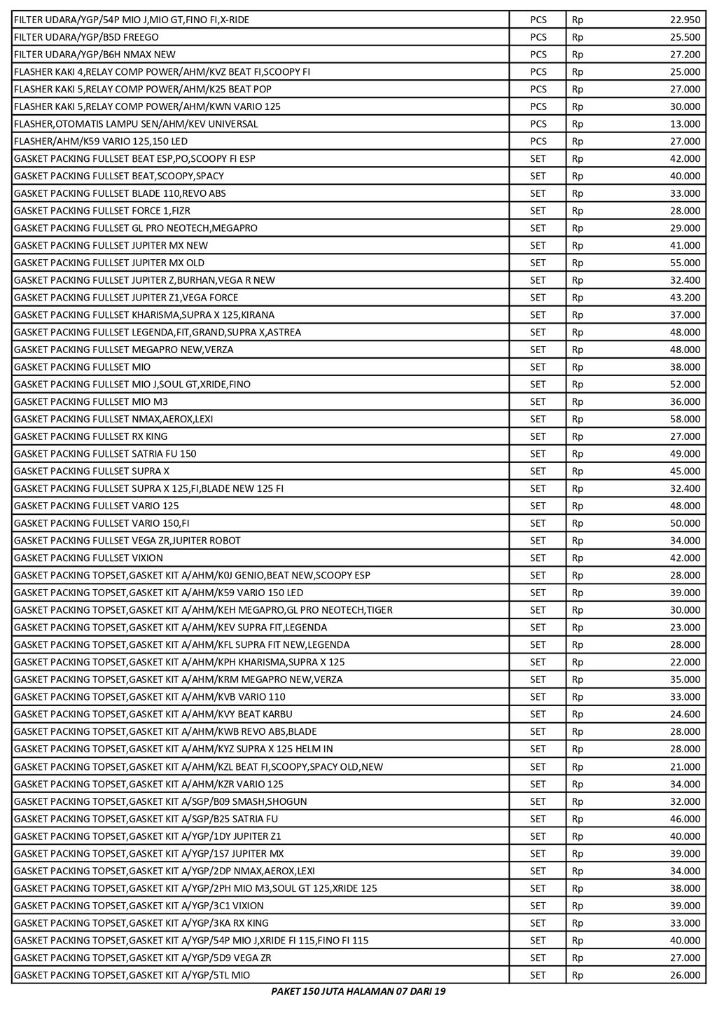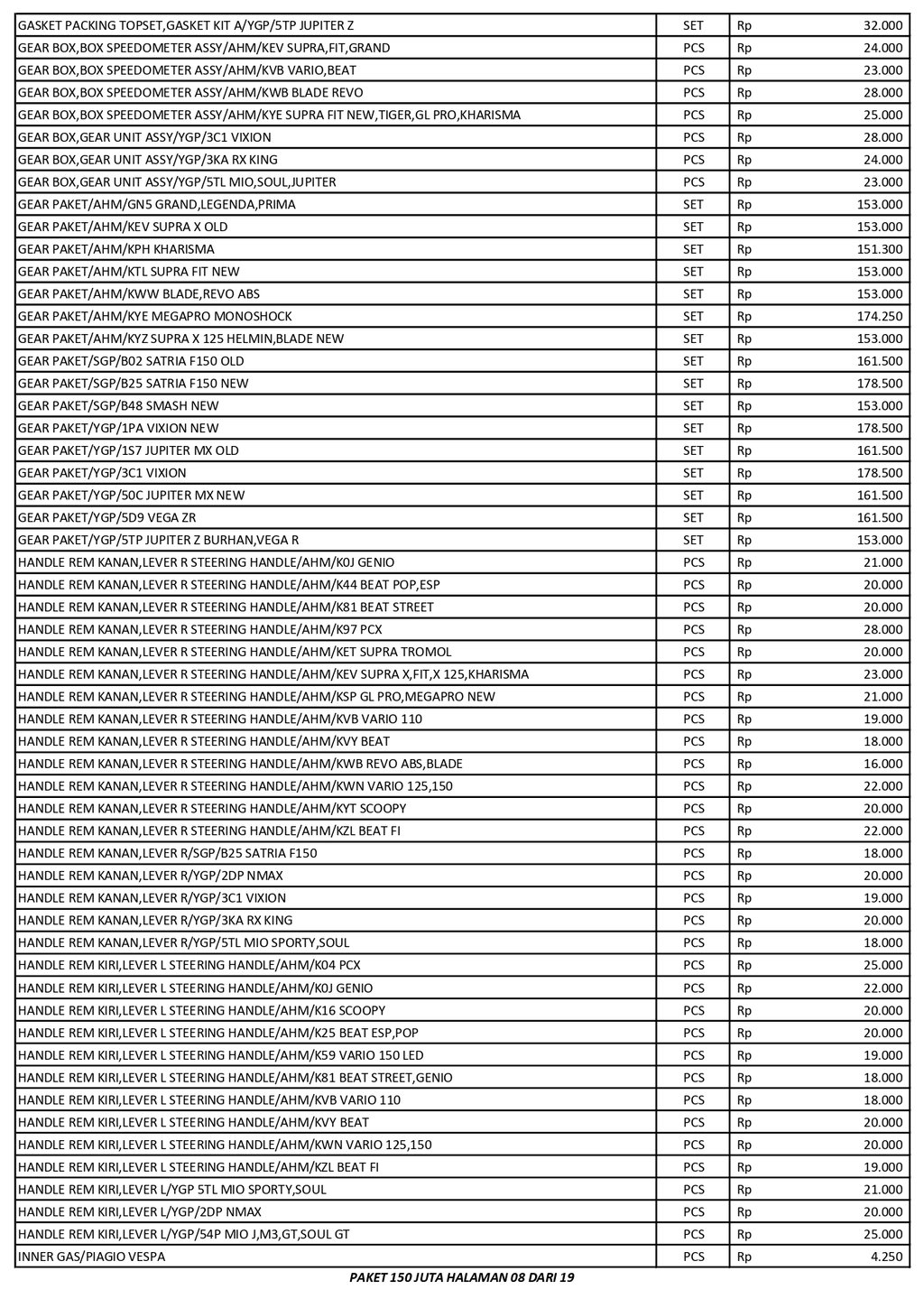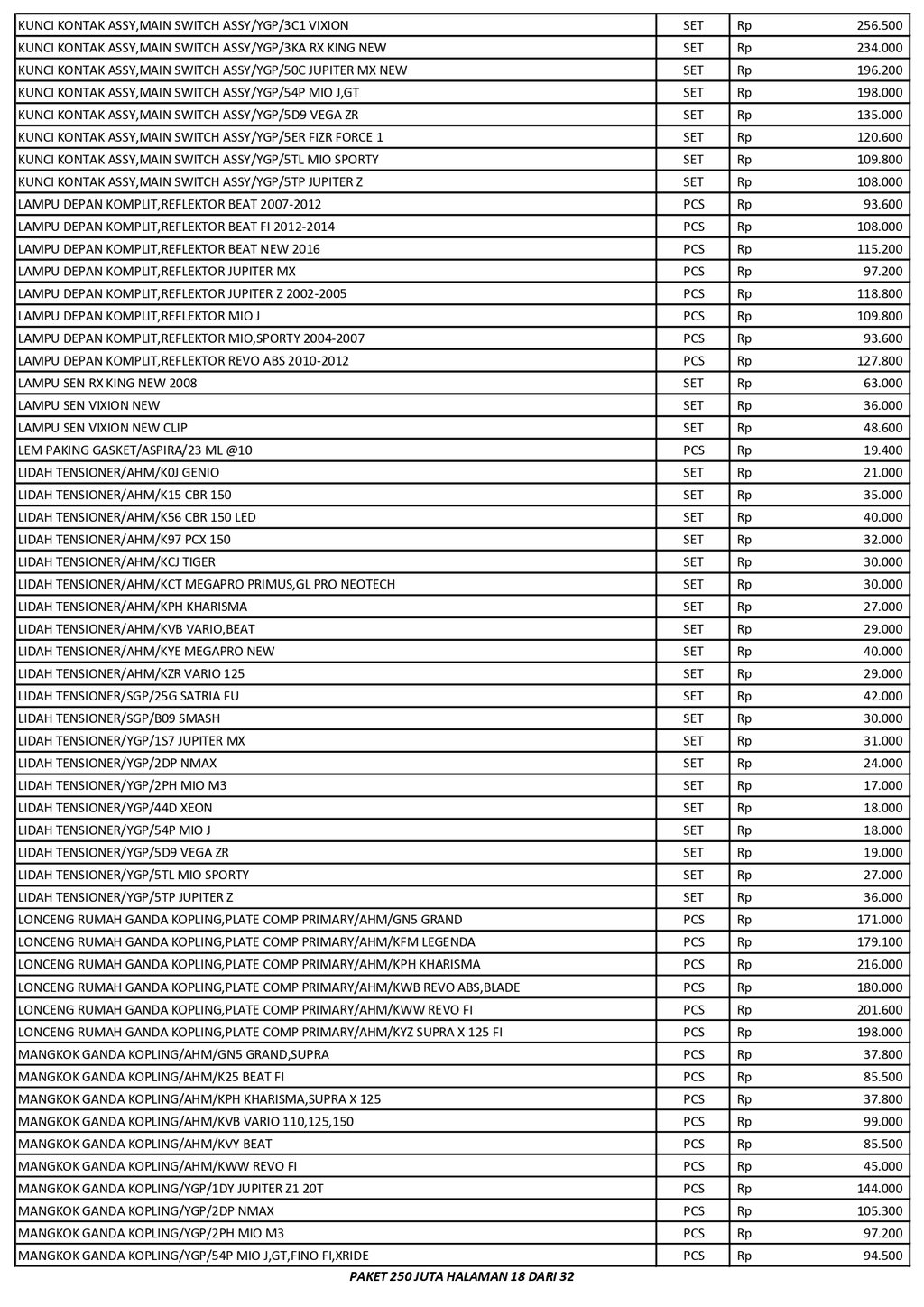 PRICELIST SPAREPART, BAN LUAR, BAN DALAM, DAN OLI