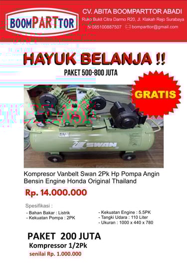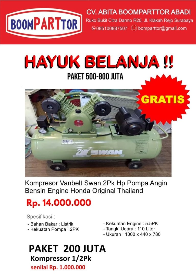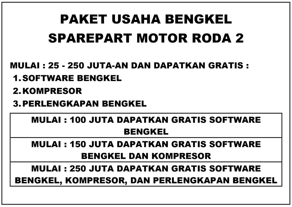 Melayani pembelian grosir maupun ecer melalui offline store ataupun online (Shopee). Untuk para pelanggan kami yang akan membuka bengkel, kami menyediakan paket bengkel dan juga konsultasi gratis dengan menghubungi no 085100887507.